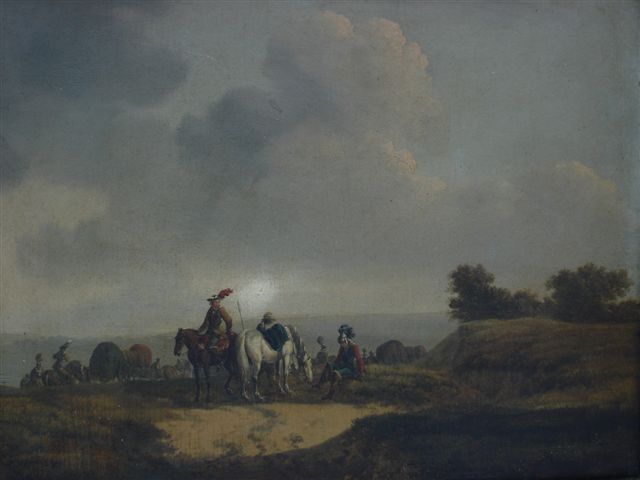 Soldats au repos dans la campagne.
