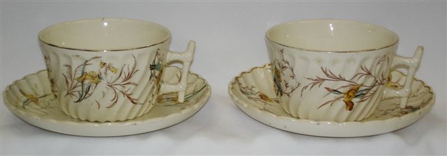 LUNÉVILLE - PETIT DÉJEUNER à décor de fleurettes, 2 tasses et leurs soucoupes.