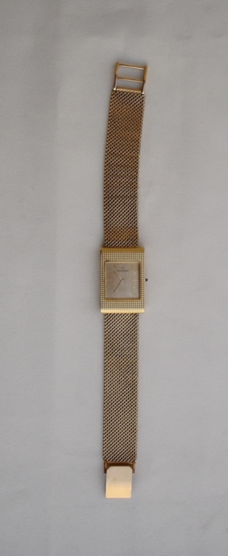 MONTRE-BRACELET d'homme en or jaune dite "diamanté", la montre rectangulaire, le tour de poignet articulé. Mouvement à quartz. BOUCHERON. Poids brut : 69 gr.