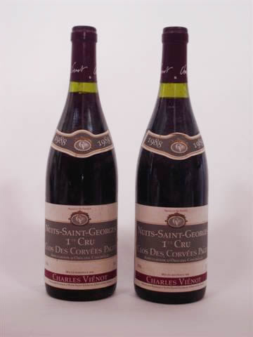 NUITS-SAINT-GEORGES 1er Cru, Clos des Corvées Paget, Charles Viénot, 1988. 2 bouteilles (niveaux bons).