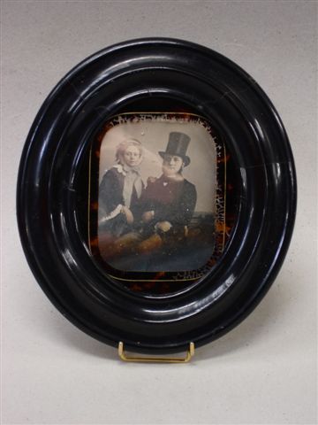 Portrait d'un couple. DAGUERRÉOTYPE. Dans un cadre ovale en bois mouluré noirci.