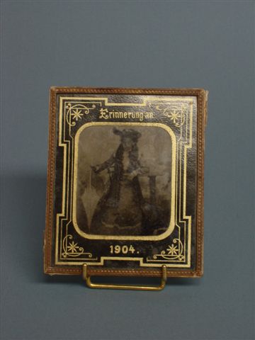 Portrait de dame assise à l'ombrelle. DAGUERRÉOTYPE sous verre, encadrement à décor doré sur fond noir, d'étoiles et filets ; inscription : " Erinnerung an. 1904. " Inscriptions manuscrites au graphite, au verso.