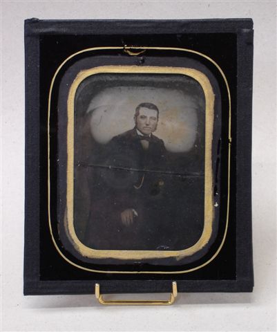 Portrait d'homme. AMBROTYPE, rehauts d'or, sous verre.