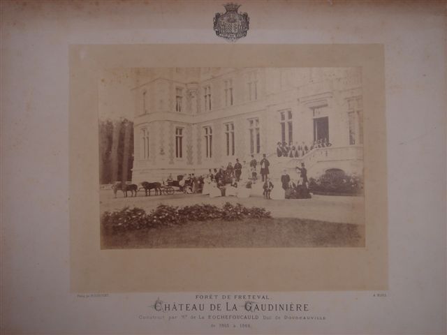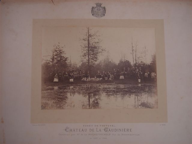 Cinq des photographies ont pour légende imprimée : "Photog. par MIEUSEMENT à BLOIS, FORÊT DE FRETEVAL. CHÂTEAU DE LA GAUDINIÈRE à Mr de la ROCHEFOUCAULT Duc de DOUDEAUVILLE 1863 à 1866"