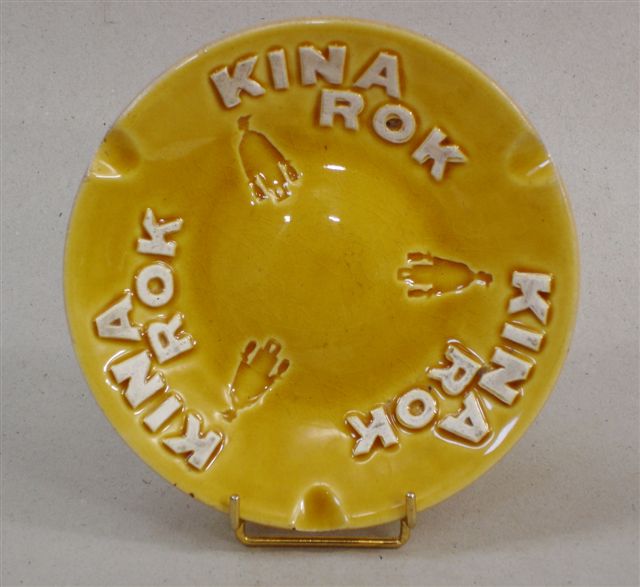 CENDRIER en faïence à couverte jaune. Décorée en son champ de trois représentations de Nectar, entouré des mentions "KINA ROK" sur le bord.