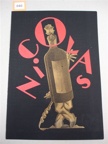 Vins rouges de Bourgogne. Plaquette de TARIFS, 4 pp. imp. par Draeger, Nectar dans une bouteille sur le premier plat, lettres argentées sur fond noir.
