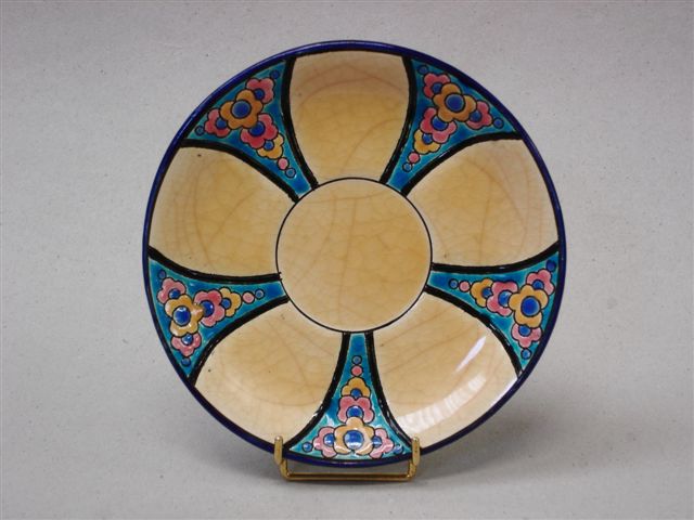 COUPELLE, décor persan de fleurs polychromes sur fond bleu et crême. Le revers en bleu céruléen.