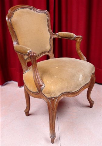 FAUTEUIL cabriolet en bois naturel mouluré à dossier contourné. Accotoirs mouvementés en retrait, pieds galbés à enroulements. Estampille : J. AVISSE