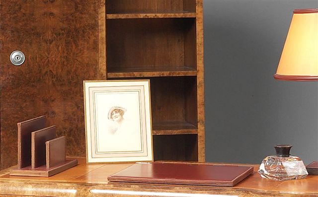 CLASSEUR à courrier et SOUS-MAIN en cuir bordeaux et métal chromé.