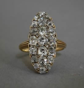 BAGUE marquise pavée de 21 diamants de taille ancienne, sur un anneau en or. Poids 4,2 gr.