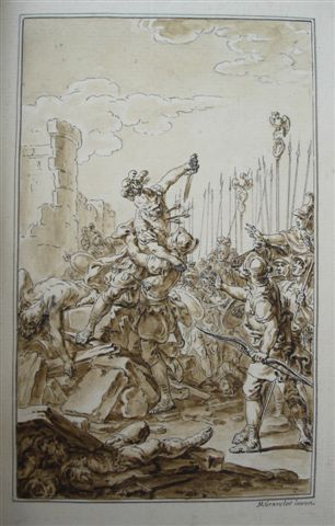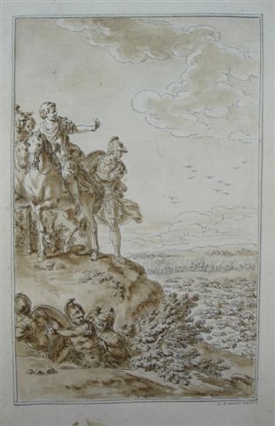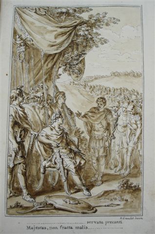Ces dessins titrés ont été collés séparément sur une feuille de papier de vélin fin et reliés à l'époque, face à l'estampe qui lui correspond.