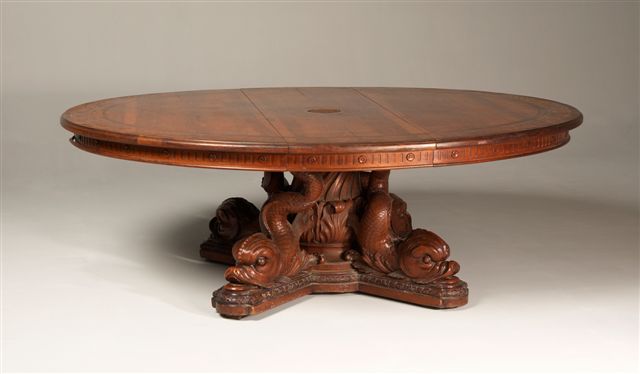 Hauteur : 67 cm, plateau : 198 x 167 cm. (Possibilité de rallonges.)