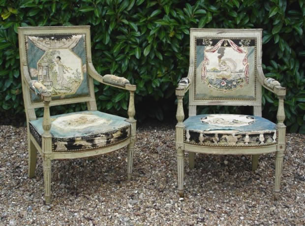 Tapisseries anciennes à scènes mythologiques (usagées).