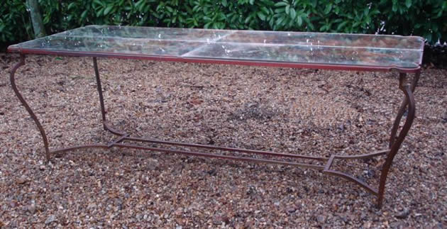 TABLE d'APPARAT en fer forgé, et plateau en verre églomi (contemporain).