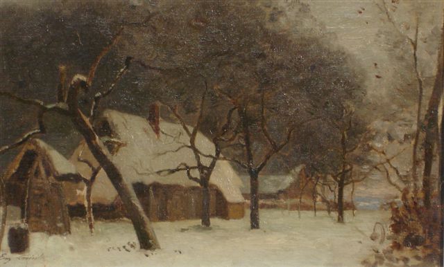 Eugène LAVIEILLE. Paysage d'hiver. Huile sur toile. Signée en bas à gauche. Étiquette n°99 au verso. 25 x 38 cm.