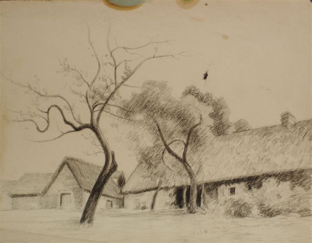 Adrien LAVIEILLE. 30 dessins tirés de carnets d'esquisses de l'artiste : paysages de campagne, études d'arbres, éléments d'architecture. Réalisés entre la fin du XIX et le début du XXème siècle en région parisienne, touraine, Château de Vendôme, Bretagne. Crayon et fusain. Certains sont signés datés et légendés.