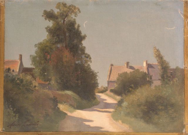 Adrien LAVIEILLE. Entrée de Hameau. Huile sur toile. Signée en bas à gauche. 25 x 34 cm.