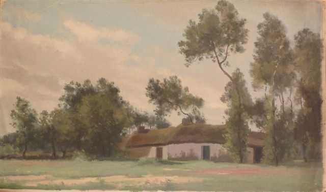 Adrien LAVIEILLE. Ferme isolée. Huile sur toile. 26 x 44 cm.