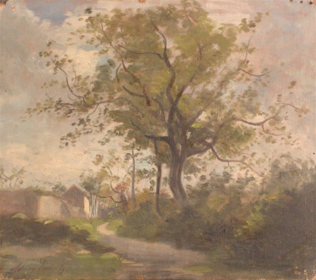 Adrien LAVIEILLE. Arbre tentaculaire. Huile sur toile. Signée en bas à gauche. 26 x 29 cm.