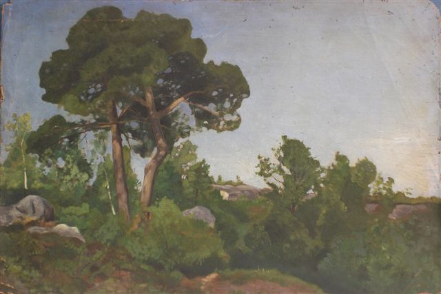 Adrien LAVIEILLE. Pins parasol en été. Huile sur toile. 32...