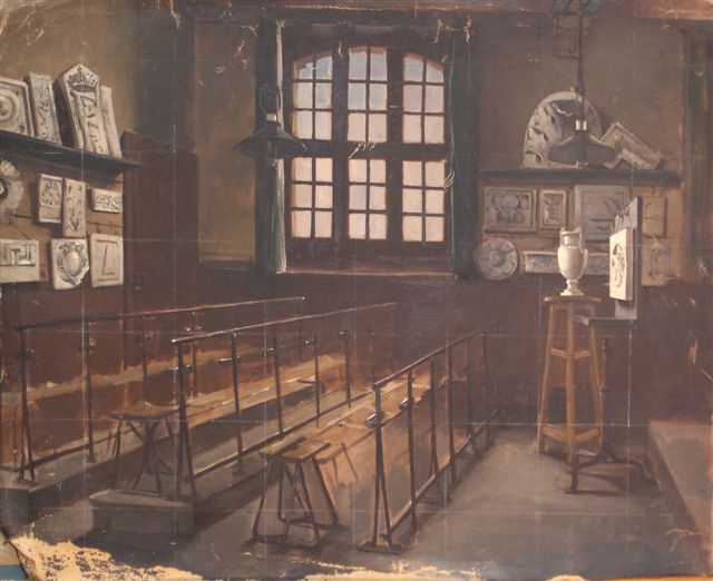 Marie-Adrien LAVIEILLE. Salle de dessin. Huile sur toile. 52 x 64 cm. Étiquette de légende au verso.