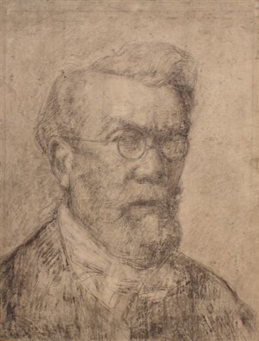 Marie-Adrien LAVIEILLE. Portrait inachevé. Fusain et apprêt sur bois. 35 x 26,5 cm. Au dos annotations "Eugène LAVIELLE (par Marie PETIT ?)"