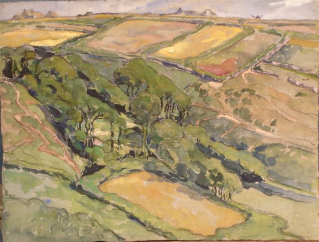 Andrée LAVIEILLE. "Vallon à la pointe du van." Aquarelle. Signée au dos. 24 x 31 cm.