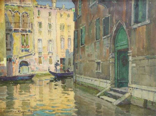Casimir RAYMOND (1870-1921). "Venise Canal Barcaroli". Aquarelle; 28 x 38 cm.