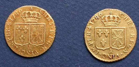 LOUIS XVI, lot : deux louis d'or, 1786, Paris, 7,60 g, 7,60 g.