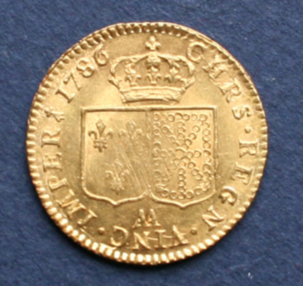 LOUIS XVI, louis d'or dit " aux écus accolés ", 1786, Metz, 7,62 g.