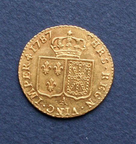 LOUIS XVI, louis d'or dit " aux écus accolés ", 1787, Paris, 7,67 g.