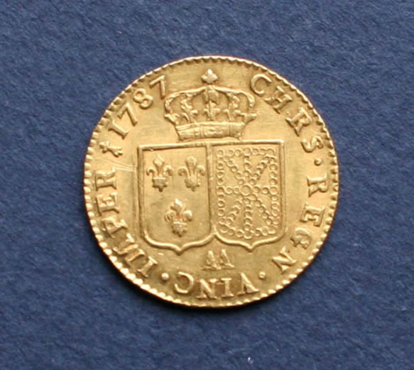 LOUIS XVI, louis d'or dit " aux écus accolés ", 1787, Metz, 7,62 g.