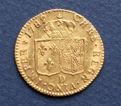 LOUIS XVI, louis d'or dit " aux écus accolés ", 1789, Lyon, (stries au revers), 7,63 g.