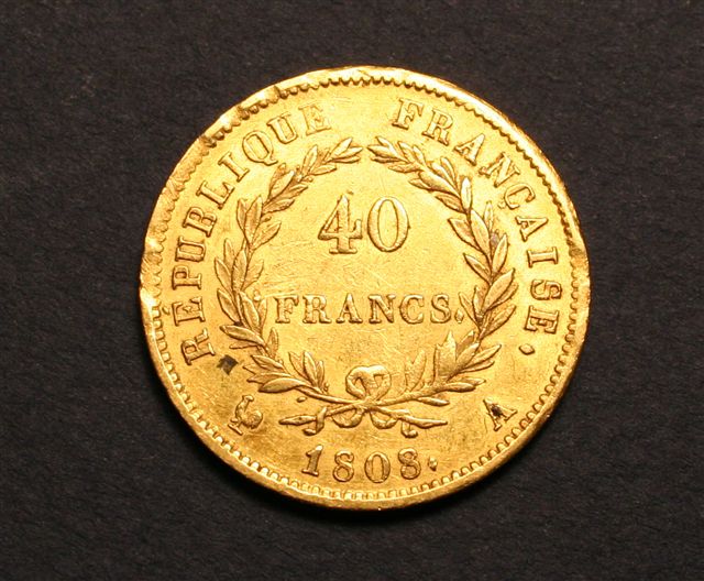 PREMIER EMPIRE : une pièce de 40 F or, 1808, A. TTB.