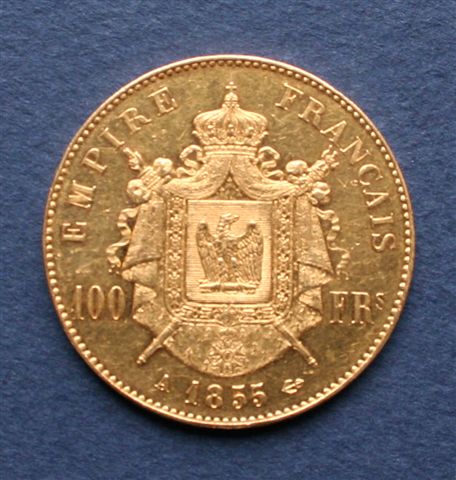 100 francs or, 1855, Paris, tête nue.