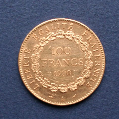 TROISIÈME RÉPUBLIQUE (1870-1940), 100 francs or, type Génie, 1900, Paris.