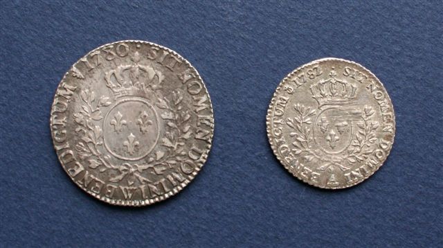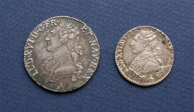 LOUIS XVI, lot, un demi-écu dit " aux branches d'olivier ",ar. 1780, Lille, 14,59g, D. 1709, un cinquième d'écu, même type, ar., 1782, le 2 regravé sur un 1, Paris, 5,69 g. D. 1710.
