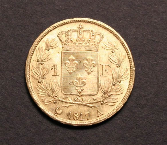 LOUIS XVIII (1814-1824) : pièce de 1 F, ar, 1817, A. SUP.