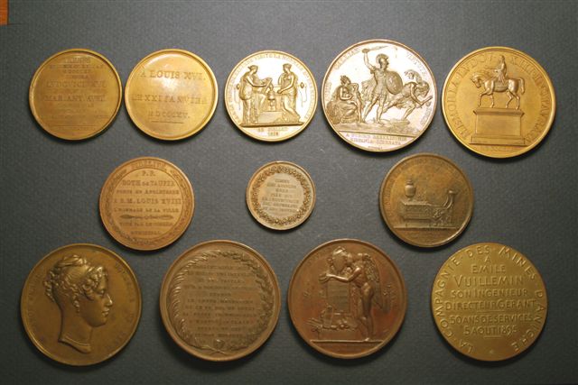 LOT de 12 médailles en bronze, (Louis XVIII, Duchesse de Berri, mines d'Aniche... ). SUP.