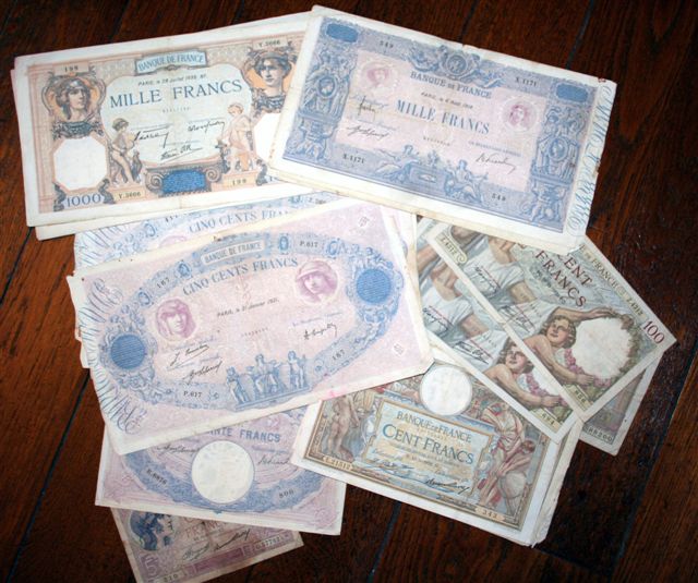 LOT : 25 BILLETS, Banque de France : cinq francs, 1933 ; cinquante francs, 1916, 1940 ; cent francs, 1922, 1924, 1927 (3), 1928 (2), 1939 (2), 1939 (Sully), 1940 ; cinq cents francs, 1921, 1937, 1939, 1940 ; mille francs, 1918, 1920, 1925, 1926, 1938, 1939, 1940 . États divers.