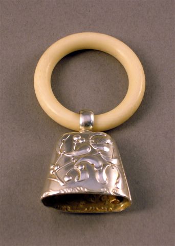 HOCHET en forme cloche ornée de feuilles de gui. Argent. Anneau. Poids brut 17 g.