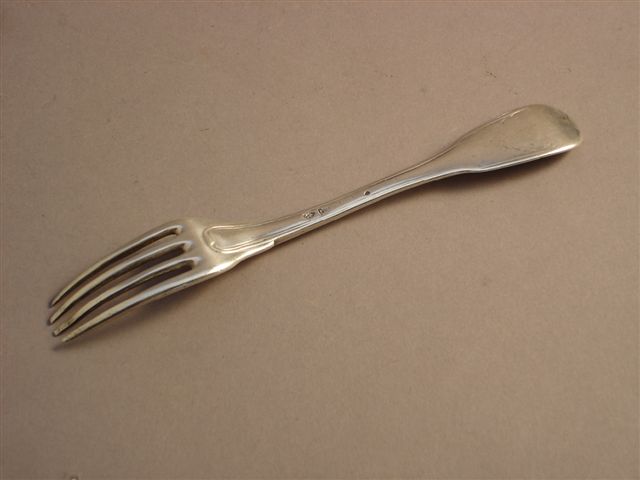 FOURCHETTE en argent. Modèle filets. Manche armoirié. Paris.