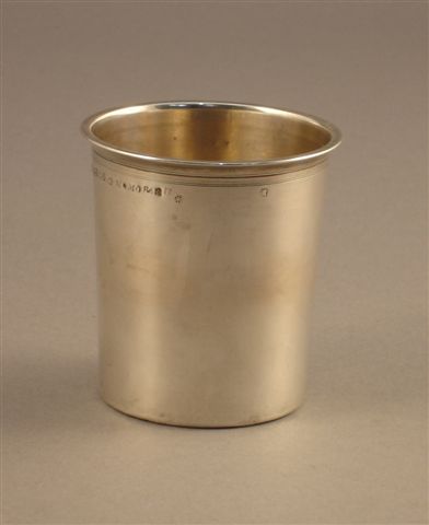 TIMBALE en argent, ornée d'un double filet au col. Poinçon Minerve.