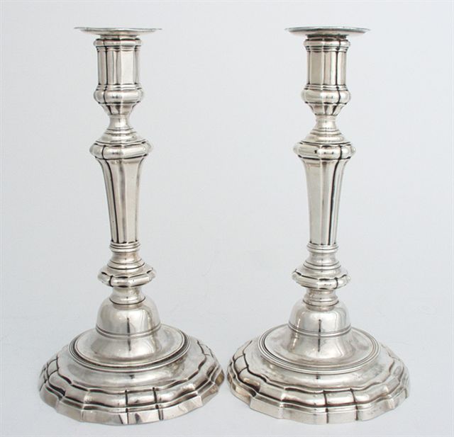 Paris, 1770. Maître-orfèvre : Edme Pierre BALZAC. Bobèches, Paris 1771. Poids : 1360 g.