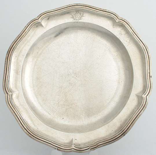 PLAT rond demi-creux en argent, modèle à filets contours. Paris, 1775. Maître-orfèvre GOUJON. Poids : 805 g.