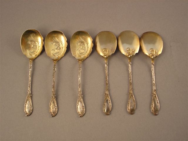 6 CUILLÈRES à glace en vermeil, ornées d'un décor rocaille.