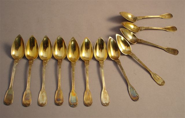 12 CUILLÈRES à DESSERT en vermeil, modèle au filet. Poinçon Minerve.