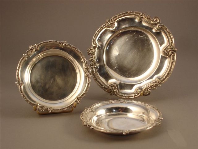 Un PLATEAU et deux COUPELLES en métal argenté. De forme chantournée, l'aile ornée d'agrafes rocaille.