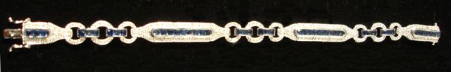 BRACELET en or blanc, orné de 45 saphirs calibrés taillés à facettes, agrémentés de 216 diamants taille moderne d'environ 0,95 carat. Poids brut : 17 g.