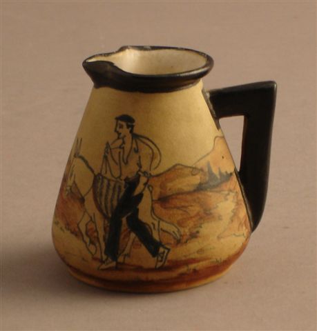 Petit PICHET au décor de grand feu d'un paysan accompagné de son âne. Marqué VE. Monogrammé MD pour Maurice David.